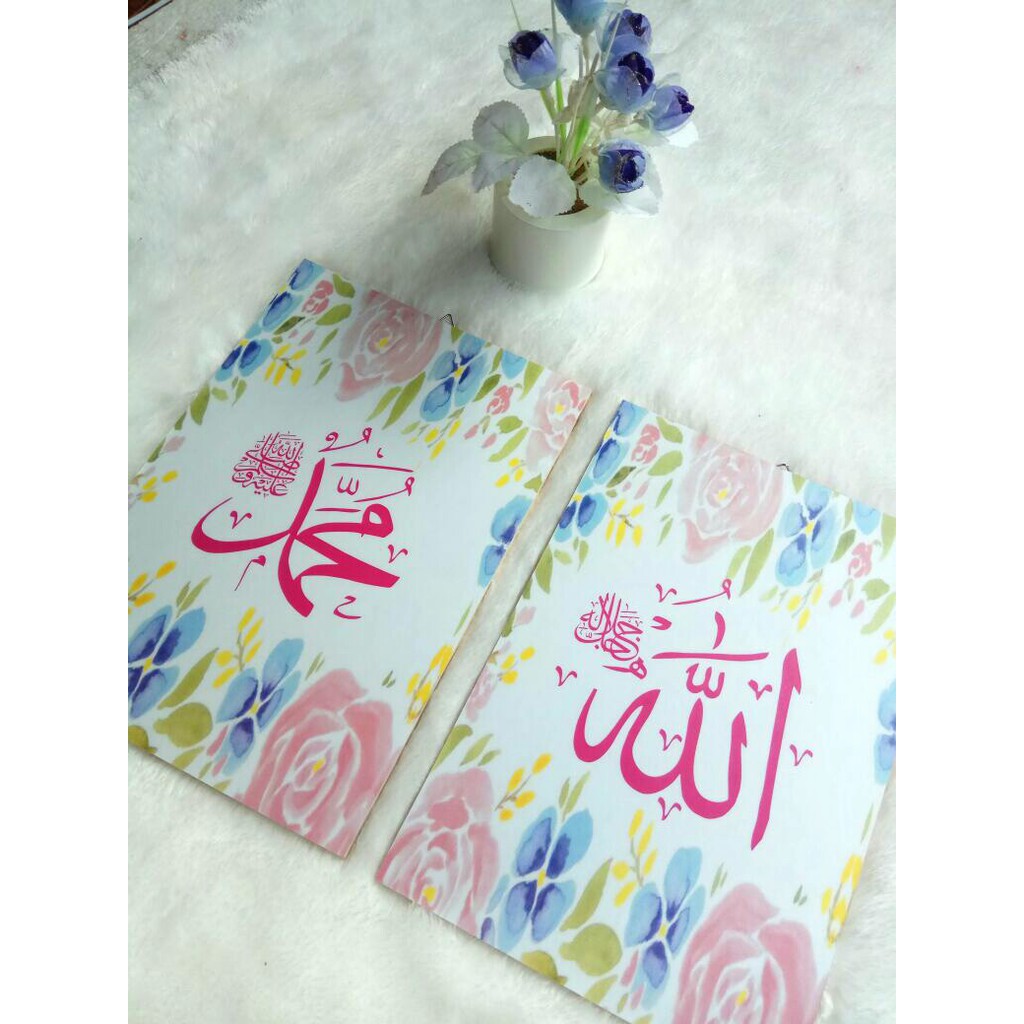 Kaligrafi lafadz Allah & Muhammad (satu set)Ukuran : Lafadz Allah & Muhammad -+ 20x30 (2 pcs) Total uk -+ 40x30Tebal : -+8mmHiasan dinding modern , pembuatannya dikerjakan oleh para tenaga ahli yang mempunyai jiwa dan cita rasa yang tinggi di bidang seni, sehingga menghasilkan produk yang menawan dan berkualitas.Bahan:- Kayu MDF (Material Density Fiberboard)- Cetak Laser Anti Luntur- Laminasi Doff Sudah Ada Pengaitnya, tinggal p