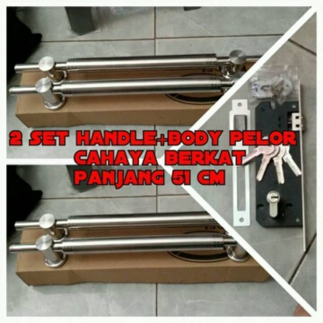 Paket handle pintu stainless panjang 51cmIsi 2set (4pegangan) dan 1set body pelor belmondo komputer key isi 4 anak ku