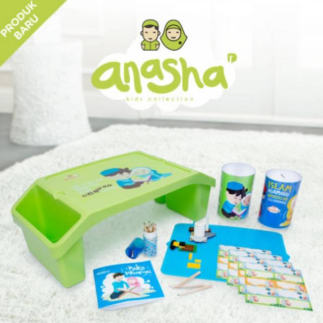 erah, terdiri dari :1 Pcs Meja Belajar anak dengan 3 lubang serbaguna Dilengkapi dengan BONUS:- Meja Belajar uk. 53.5 x 28 x 17.8 cm- Papan Lego (Lego tidak termasuk) uk. 27 x 23 cm- Set Pencil Warna uk. 3.4 x 10.6 cm- Buku Mewarnai Anasha uk. 14.8 x 13.3 cm- Sticker Nama Anasha (4 lembar) uk. 13.8 x 13.6 cm- Coin Bank/Celengan (2 pcs) uk. 8.5 x 14.2 cmAnasha Fidela Kids Table Set hadir dengan design modern dan pesan penuh nilai, membuat buah hati Anda lebih senang dan nyaman belajar serta tetap mendapatkan nilai - nilai kebaikan.Dapatkan juga koleksi Anasha series lainnya:- Kaos Anak Anasha (Tersedia dalam Lengan #Panjang dan Pendek)- Anasha Faeyza Puzzle Lunch