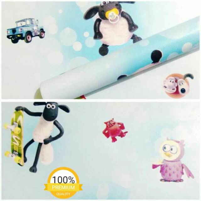 Terlaris Perlengkapan di Kota Bekasi Grosir Murah_wallpaper Sticker Dinding Biru Ruang Tamu Dan Kamar Motif Shaun The Sheep Lucu 10mx45cm dari Tidak Ada Merek Kota Jakarta Utara