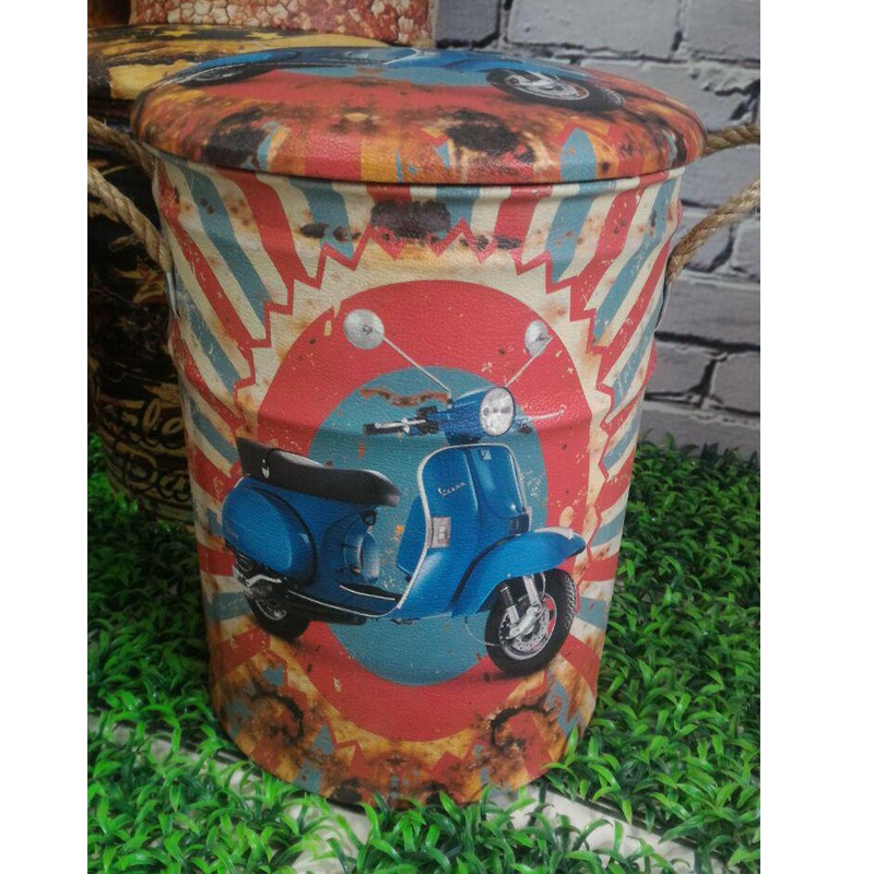 Name: Kursi Tong Bahan Kaleng Metal Lapis Kulit Oscar Print Vespa Klasik Tin Stool Kursi Cafe / Kafe