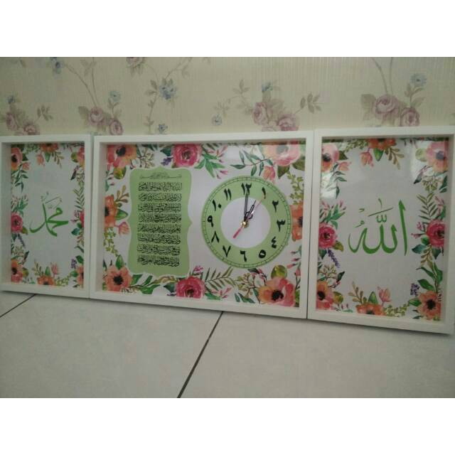 Grosir Perlengkapan di Kabupaten Pemalang Hiasan Jam Dinding Kaligrafi Ayat Kursi Dan Allah Muhammad Warna Hijau Water Color dari IKEA Kota Tangerang