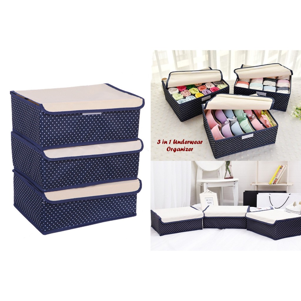 Name: (best Seller!!) Bamboo Underwear Organizer / Bra Multipurpose 3 In 1 Storage Box Set Bra Organizer