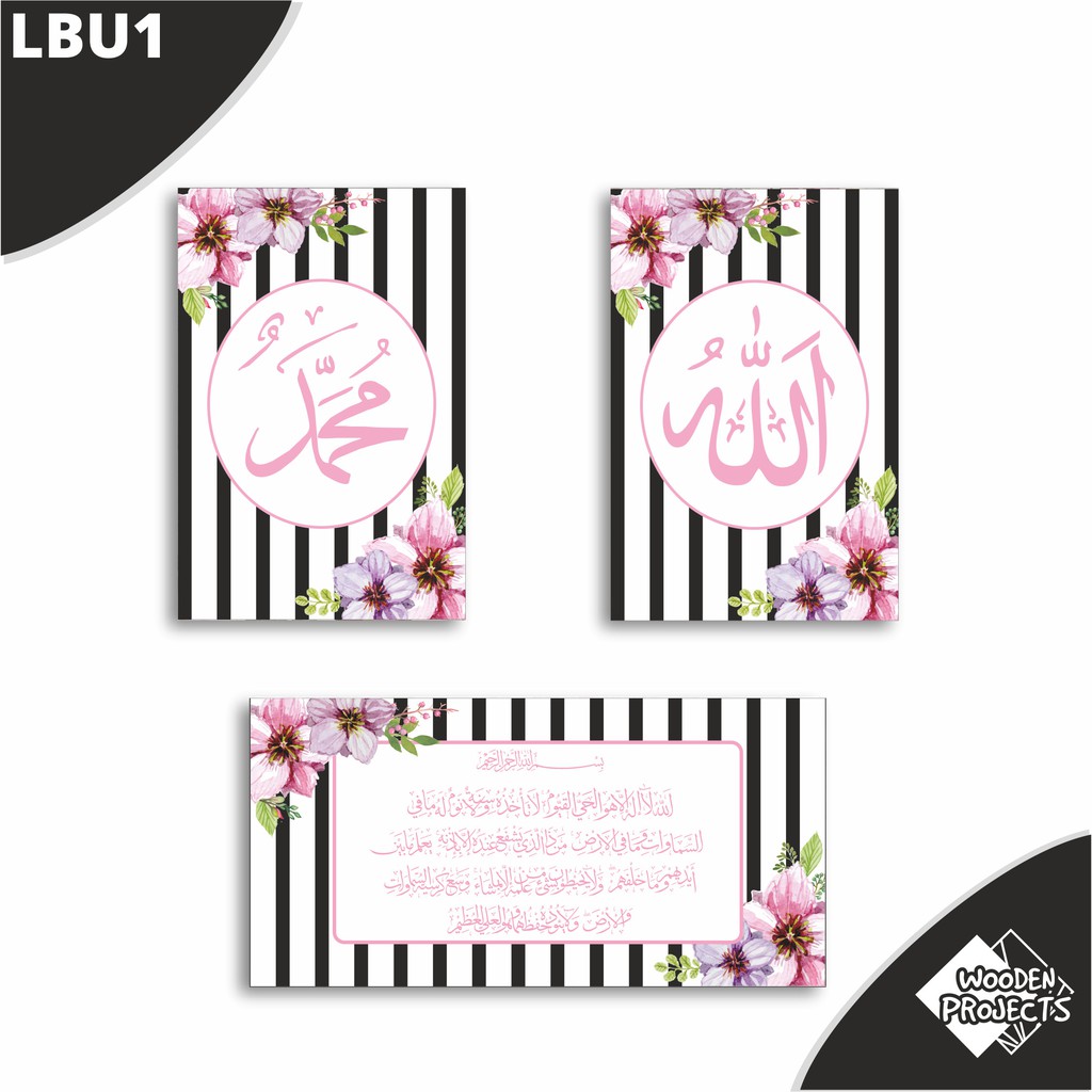 Name: Wooden Projects Walldecor Islamic Shabbychic Monochrome Allah Muhammad & Ayat Kursi - Lbu1
