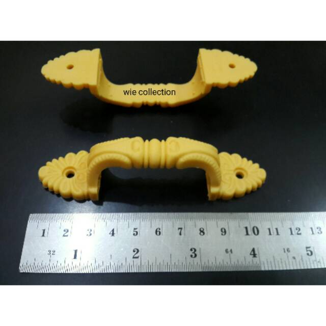 handle plastik warna kuning ini memiliki panjang 11cm dan jarak lubang 8,5cm..terbuat dari bahan plastik tebal dan kokoh..tidak gampang patah atau retak saat dikunci..super recommended untuk dipakai pada rak aluminium,rak piring maupun lemari..handle ini dijual dalam satuan 1bungkus dengan isi 12pcs..Barang asli sama dengan foto (No Edit)..barang yang diorder akan melalui proses quality control (quantity dan kualitas akan dicek terlebih dahulu dan dipacking dengan rapi sebelum dik