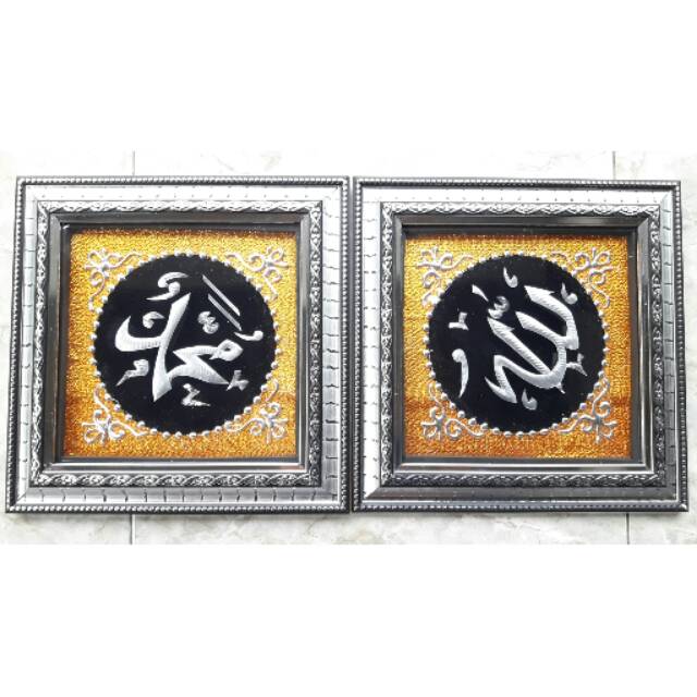 1Set Kaligrafi Allah Muhammad(1pcs Kaligrafi Allah dan 1pcs Kaligrafi Muhammad)Detail Kaligrafi alumunium kami sebagai berikut :- Bahan Dasar : kain sutera metalik- Bahan tulisan kaligrafi : alumunium - Finishing : plastik zuvy transparan- Ukuran Kaligrafi : 28cm x 28cm- Bahan Bingkai : Poly Fiber 4cm - Warna Bingkai : perak - Bingkai : di lapisi plastik zuvy variasi : 1.Emas2.Perak3.Marun metalikDecoration for :- Living Room- Bed Room- Working Place- Office/Class- Garage- Restaurant- Cozzy Cafe- Hang Out Place- Harga Terjangkau- Kualitas Terjamin- Desain Menarik- Pemasangan Mudah- Sangat Cocok Untuk Mempercantik Ru