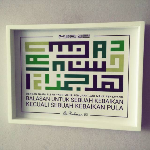 Wooden poster kaligrafi surat ar-rahman ayat 60 kufi hijau uk