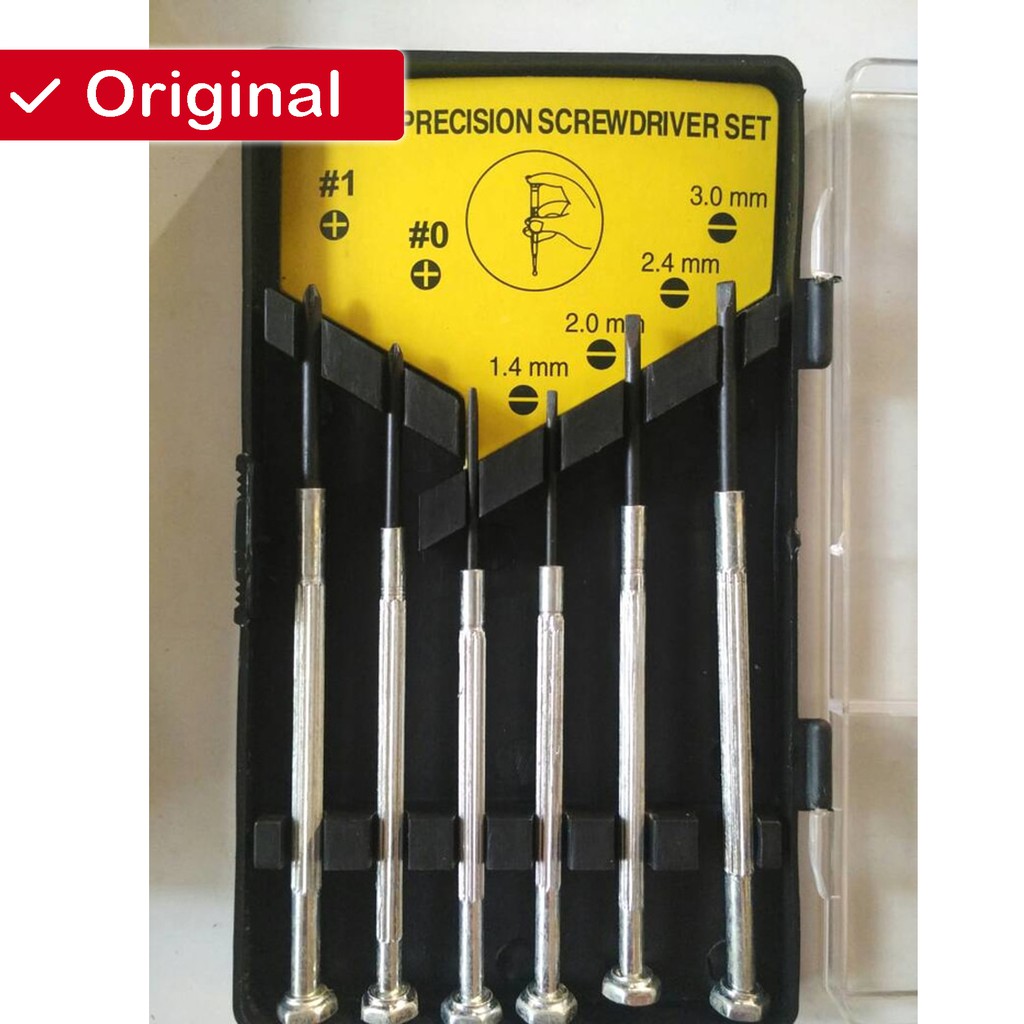 - Ringan dan mudah dibawa- Produk ekonomis dan kuatKENMASTER Obeng Jam Set Kecil 6 pcs terbuat dari bahan yang berkualitas untuk atomizer, coiling, jam, handphone dan lain lainKelengkapan Produk :- 1 buah mata obeng plus (+) ukuran PH 0- 1 buah mata obeng plus (+) ukuran PH 1- 1 buah mata obeng minus (-) ukuran 1,4 mm- 1 buah mata obeng minus (-) ukuran 2 mm- 1 buah mata obeng minus (-) ukuran 2,4 mm- 1 buah mata obeng minus (-) ukuran 3 mmCocok digunakan untuk membongkar peralatan elektronik yg precise seperti laptop, handphone, camera, mainan elektronik, alat rumah tangga dll, praktis dan bisa dibawa kemana2, bahan awet dan bagus.#obeng #obenghp #obengjam #obe