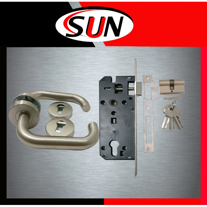 Terlaris Perlengkapan di Kabupaten Bandung Barat Paket 1 Set Handle Kunci Pintu Rumah Kamar Mandi Pipa Stainless dari Sun Hardware Kab. Bekasi
