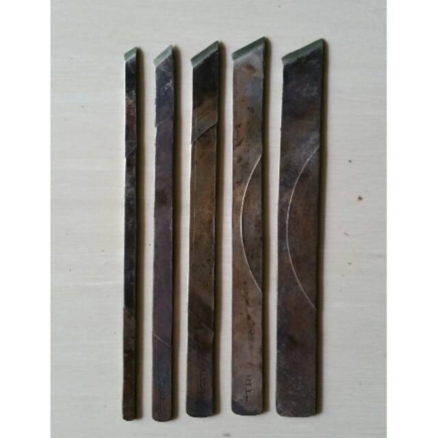 Alat pahat ukir jenis pengot atau pahat miring dengan bahan baja yang ulet yaitu dari piringan gergaji circle. biasa disebut tatah graji. sudah takam dan siap pakai.pahat ini biasa difungsikan untuk membersihkan bagian-bagian sudut yg tdk bs dijangkau oleh pahat penilat atau pahat lurus.set isi 5 dg ukuran terkecil lebar 7 mm dan yg terbesar lebar 23 mm. itu lebar dari bajanya bukan dari kemiringan tajamnya. utk kemiringannya lbh lebar lg. dr trkecil sampai trbesar antara 1-3miliready stok siap diorder gan..TB. Makmur Barokah Jepara#alatpahat #alatukir #pahatpengot #pahatmiring #pahatj