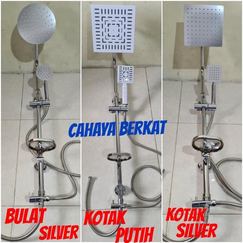 Ready stok!!!SHOWER TIANG SET STAINLESSperlengkapan dan ukuran :- tinggi tiang shower dan lebar kedepan 30cm- shower besar 20cmx20cm- shower kecil 10cmx12cm- tempat sabun batangan- selang shower kecil 1,5mtr- gantungan shower kecil- kran T setelan shower besar dan shower kecil- selang pendek sambungan ke kran on offBELUM DAPAT KRAN CA