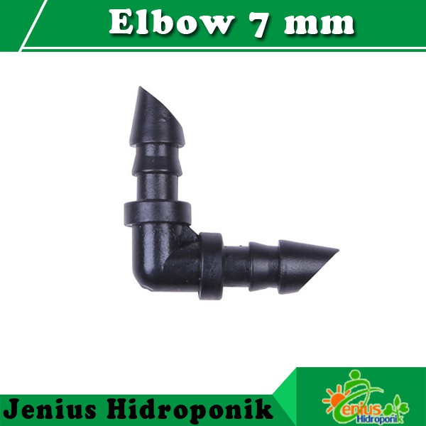 Elbow Connector 7 mm, Penyambung Bentuk L Selang PE 7 mm, Fertigasi / Irigasi / Hidroponik / GardeningSambungan dari selang 7 mm (5mm / 7mm) ke selang 7 mm (5mm / 7mm) bentuk LHarga di atas per satuah