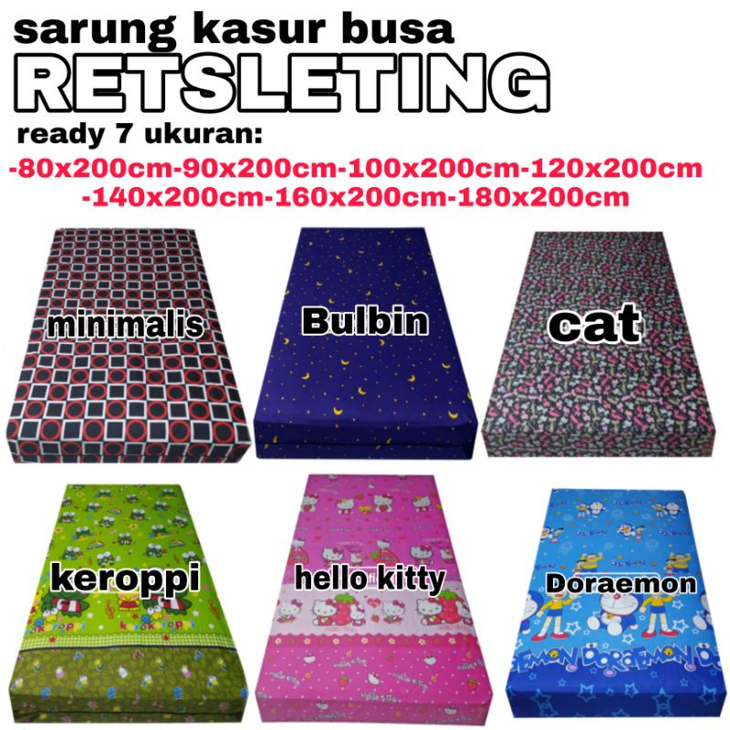 SARUNG BUSA RETSLETINGDengan memakai sarung kasur busa tidak ada lagi sprei yg kusutCukup masukan kasur/busa kedalam sarung,tutup ritsletingnya dan selesaiDengan tinggi 15cmTersedia ukuran:-80x200-90×200-100×200-120×200-140×200-160×200-180×200dan berbagai macam motif seperti-Doraemon-Tayo-Hello kitty-keroppi-Spiderman-Bulan bintangGuccidll Tulis dicatatan untuk motif yg dibutuhkanGambar diatas hanyalah contohAnda bisa request untuk motifKami akan kirim motif via chat#sarung#sprei#kamartidur#spreikatun#spreimurah#kasurbusa#ritsleting#