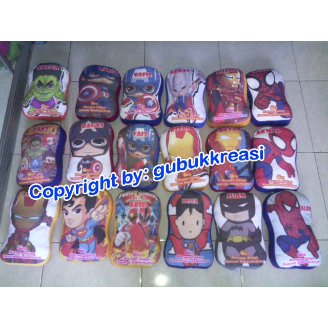 BAGAIMANA MEMBUAT ANAK MAKIN SAYANG DENGAN ANDA?Berikan yg spesial di ulang tahunnya sehingga akan teringat sampai dewasanya~*~*~*~1-Free Desain semaumu bs dicostum tambah nama/foto 2-Free packing plastik & pita cantik warna-warni3-Jika butuh Mendesak, BISA SELESAI DALAM 1 HARI~*~*~*~4.Jahitan rapi dg JUKI high speed machine 5.Gbr depan Cetak printing bs ujung/ full utk bordiran harga disesuaikan dg desain6.warna belakang sesuai permintaan anda7.Kami mesin sendiri lengkap pengerjaan cepat->Ukuran 20x30cm8.Bahan Velboa kualitas A halus lembut utk boneka impor*khusus bantal leher fullprinting bahan Yelvo9.Isi silikon dacron sintetis tanpa campuran daur ulang*Aman bagi kesehatan anak Anda & keluarga10.Sangat SPESIAL TIDAK MURAHAN TIDAK PASARANPemesanan min.30pcs ya.. silahkan chat dulu spy lbh jelas o