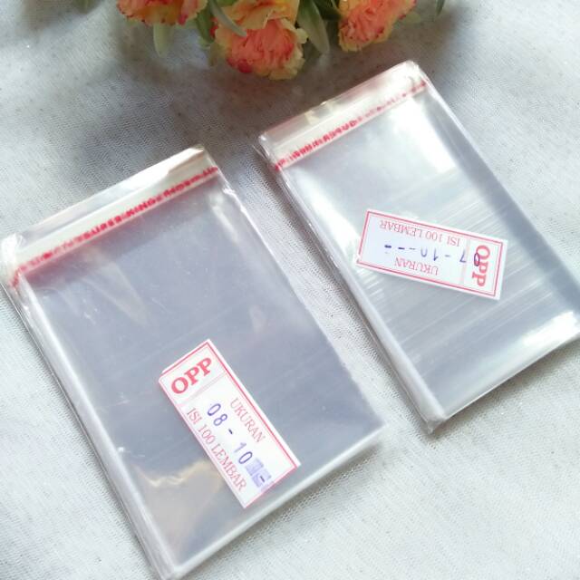 Plastik OPP isi 100 per pack, berperekatVariasi ukuran :- 7 x 10 cm- 8 x 10 cm*) tidak begitu tebal*) plastik ini yang biasa kami gunakan untuk membungkus bahan aksesoris atau aksesoris.#plastik#plastic#plasti